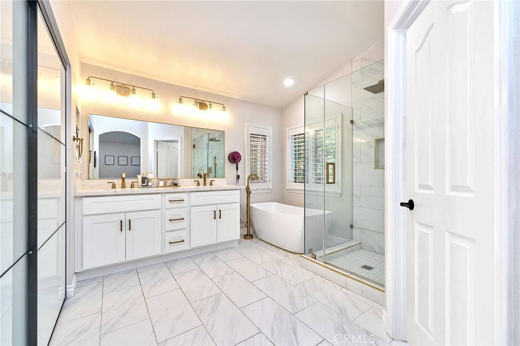 Welcome home to this stunning 3 bedrooms and 2.5 baths home w/Great curb appeal in Stevenson Ranch. Upon entering, you are greeted by a soaring high ceilings, creating an inviting and spacious ambiance. The home features a well-designed layout including a family room, a living room and a dining room, all seamlessly flowing together for easy living and entertaining. The chef's kitchen features a modern white shaker style cabinetry, quartz countertops, stainless steel appliances and a center island that opens beautifully to the family room. Upstairs, you will find 3 bedrooms and a loft, which can be used as a 4th bed. The Primary suite offers vaulted ceiling and a luxurious en-suite bath with double vanity, free standing tub and a separate shower. The spacious backyard with a covered patio is a perfect for entertaining. Located in a desirable neighborhood with top-rated schools, nearby parks, shopping, dining and quick freeway access.