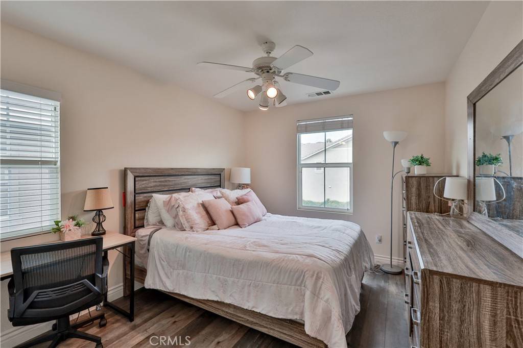 Beautiful Tesoro de Valle Home with Mountain & Valley Views! This stunning 4-bedroom, 3-bathroom residence offering 1,798 sq. ft. of living space in the highly desirable Canterbury community of Tesoro de Valle. Built in 2005, this two-story home combines modern upgrades, spacious living areas, and resort-style amenities in one of Valencia's most sought-after neighborhoods. The light-filled interior boasts high ceilings, recessed lighting, wood and tile flooring, and double-pane windows throughout. The inviting living room features a cozy fireplace, while the gourmet kitchen is designed for both everyday living and entertaining with granite countertops, breakfast bar, ample cabinetry, and stainless steel appliances including refrigerator, dishwasher, microwave, gas range, oven, and cooktop. The open floor plan flows effortlessly into the dining and family areas, making it ideal for gatherings. All four bedrooms are located upstairs, including a spacious primary suite with mountain and valley views, a luxurious bathroom with dual sinks, soaking tub, walk-in shower, and a large closet. Secondary bedrooms are generously sized and perfect for family, guests, or a home office. Bathrooms feature modern tile counters, walk-in shower, and shower-in-tub options. Additional highlights include: Central air & heat for year-round comfort, individual laundry room with washer/dryer hookups, attached 2-car garage with direct access, ceiling fans, smoke detectors, and energy-efficient upgrades. Step outside to enjoy a large front and backyard with an irregular-shaped lot, offering endless potential for entertaining, play, or future expansion. Living in Tesoro de Valle means access to unmatched HOA amenities, including a sparkling pool, spa, clubhouse, gym/exercise room, tennis courts, playgrounds, hiking trails, and beautifully landscaped common areas—all with low monthly dues. Conveniently located near top-rated schools, shopping, dining, and freeway access. Don't miss your chance to own this move-in ready gem with panoramic views in one of Valencia's premier communities. Schedule your private showing today!