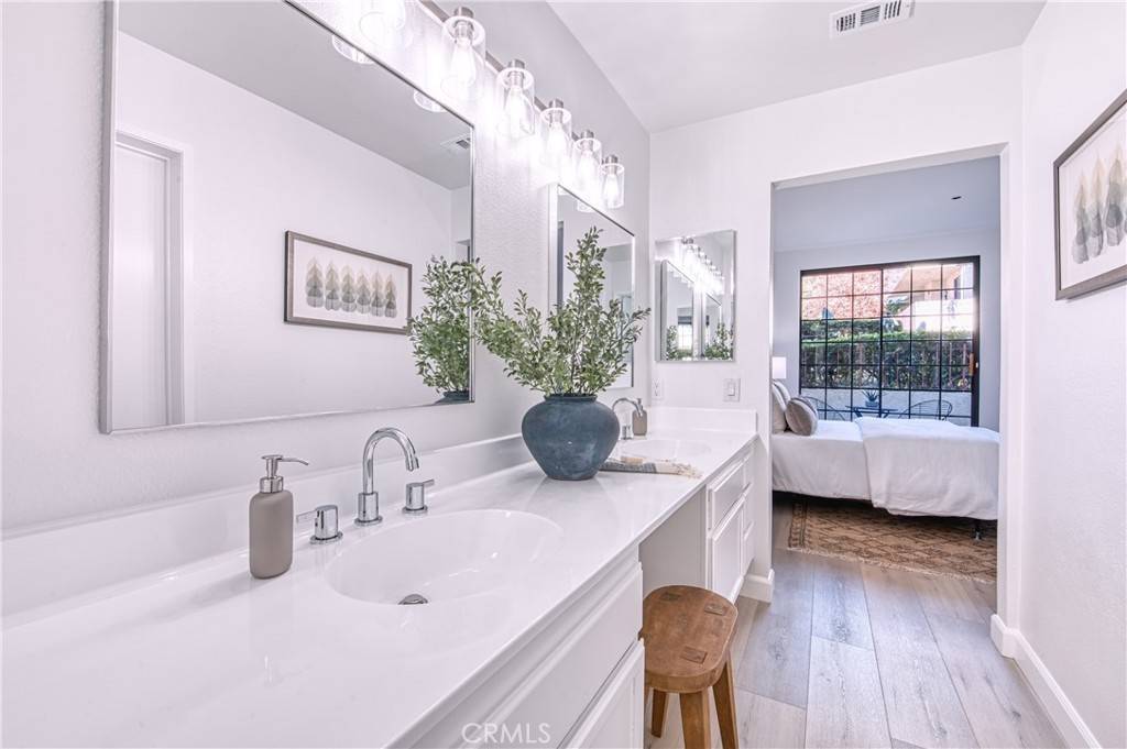 Move-in ready single-level condo located across the street from Cal Tech. This recently renovated unit was built in 1985 by noted local engineer/builder John Hedrick of JH Hedrick Company, who built mid-century style apartments, condominiums, and office buildings in California from San Diego to Santa Barbara. This secure and gated community offers well-maintained grounds with abundant mature trees, lush planters, a pool and spa, all focused around a main courtyard and pathway. Situated just north of a primarily residential neighborhood the location offers close proximity to California Institute of Technology, Pasadena City College, Polytechnic School, The Huntington Library, Art Museum, and Botanical Gardens, Grant Park, and some of Pasadena's most attractive neighborhoods such as Rose Villa/Oakdale. This 2-bedroom and 2-bathroom unit is turnkey and comes with a private patio (approx. 200 SF) and two parking spaces in the secure resident garage, as well as in-unit laundry. Both bedrooms have walk-in closets and direct access to the private patio. The property blends functional design elements such as 9-foot ceilings, calming natural light, ample room sizes, luxury vinyl plank floors, and plentiful storage while offering a clean and contemporary aesthetic. The indoor-outdoor flow of this 1,104 SF (per LA County Assessor) one-level property make it feel larger than the SF number suggests. Light and bright, this unit recently underwent substantial cosmetic upgrades, including new interior paint, new recessed lighting, new light fixtures, and new plumbing fixtures. Other aspects of this property that will satisfy selective buyers include the beautiful wood-burning fireplace, serene private patio, three sliding glass doors, new quartz kitchen countertops, under-mount sink, and a recently installed new central HVAC system. This unit also comes with a stainless-steel refrigerator, dishwasher, and stove, as well as a stackable clothes washer and dryer. The Villa Corona HOA is an ideal community for its residents and offers a relaxing suburban vibe close to the hustle and bustle of Lake Avenue and Colorado Boulevard. The monthly HOA covers exterior maintenance, roof, water, trash, sewer, insurance for the HOA, secure pedestrian and garage gates, professional HOA management, and beautifully landscaped grounds. Whether you are looking for a wonderful starter home, a modern pied-a-terre, or a comfortable space during retirement, this unit can work for all buyers.
